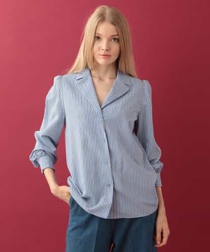 ストライプテーラードブラウス IMPORTED ブルー 36