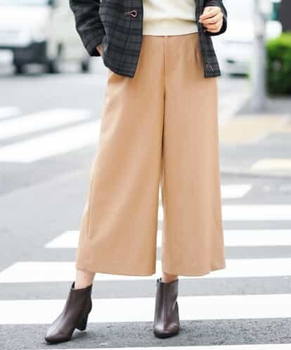 ◆秋の新作アイテム◆ウールに見えするポリエステル糸を使用した素材のワイドクロップトパンツ。ウールより扱いやすくチクチクが気になりません。ソフトでしなやかな風合いと上品な生地の見え方がポイントのパンツです!※34(XSサイズ)・42(XLサイズ)はWEB・一部限定店舗での販売です。