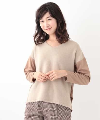 レーヨンミックスの程良い光沢感のあるジャージー素材に、柔らかな風合いを魅せてくれるニット地をドッキングしたプルオーバーです。広めのVネックにドロップショルダーがフェミニンな抜け感をプラス。テールロングになったバックは、サイドにタックを入れた立体的なシルエットがポイントになっています。model:H170 B80 W59 H85 着用サイズ:M