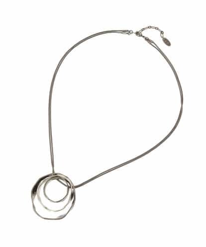 イレギュラーなシェイプの奥行きのある メタルサークルを連ねたネックレス。 凹凸のあるテクスチャに、カラーに変化を付けた トップがスタイリングをさらに引き立ててくれます。 重厚感のあるモチーフにダブル使いのチェーンが バランス良く仕上がっています。