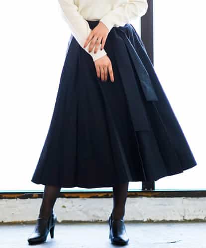 女っぽさたっぷりなタックフレアースカート 分量をたっぷりと取ったタックがポイントのフレアースカート。ナチュラルなタッチの素材は程良くハリがあり透けにくいのがポイント。ボリュームニットや編地変化のあるニットなど表面感のあるトップスとのスタイリングがおすすめ。付属のリボンをつければグッと女性らしい華やかな印象に。定番カラーはもちろん、コートインで着映える【パープル】の旬カラーもおすすめ。※屋外での撮影は色味が多少異なる場合がございます。商品の色味は、スタジオ撮影の画像をご参照ください。 ※サンプルでの撮影となるため、実際にお届けする商品と仕様やサイズが異なる場合がございます。