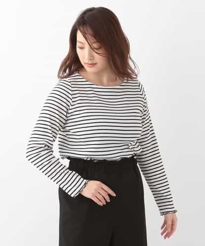 秋冬のインナーアイテムとして着回しやすい細リブ素材のラウンドネックカットソー。裾や袖口に施したフリルメローがスタイリングのアクセントになってくれるカットソーです。しっかりとした生地感で、滑らかな肌触りも特徴です。一枚でシンプルに合わせることもできるアイテムです。