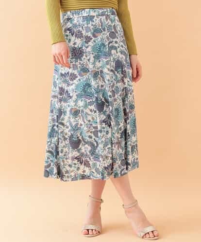 【日本製】フラワー更紗プリントスカート ライトブルー 11