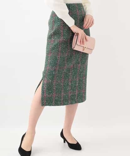 チェックツイードタイトスカート グリーン 38