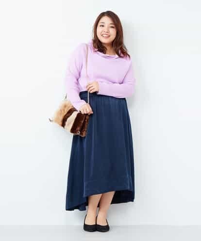 風合い柔らかなデザインニット。 襟ぐりのリボン風のねじりディテールが女性らしくフェミニンな印象です。 スカートからパンツまで幅広く合わせられる着丈になっています。