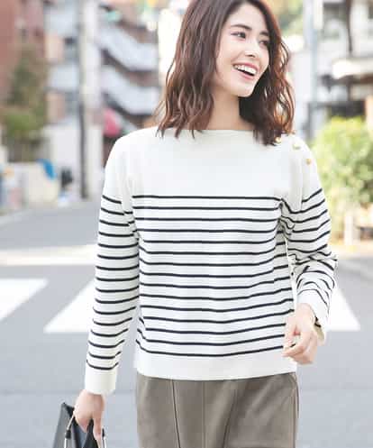 ミラノリブ メタルボタン付きボーダーニット[WEB限定サイズ] ネイビー 38