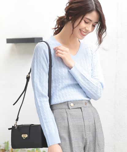 【ドラマ着用】Vネックケーブルニット[WEB限定サイズ] ライトブルー 40