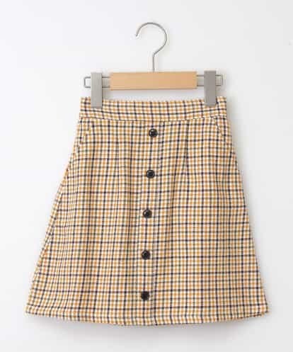[160]チェックフロントボタンスカート[WEB限定サイズ] イエロー 160