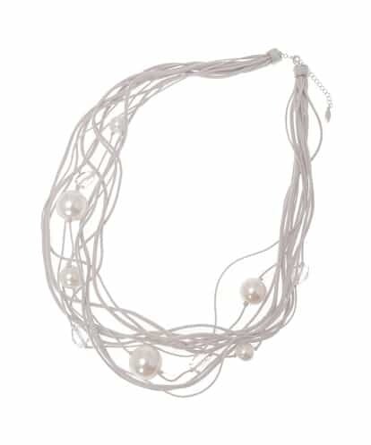 大小様々なサイズのパールをランダムに繋げたロングネックレス。ネック周りにぴったりとフィットする長さで、ボリューミーで重厚感のあるデザイン。特別なシーンでも活躍してくれること間違いなしのモダンで華やかなアクセサリーです。コットン紐を使うことで金属が苦手な方にもおすすめです。