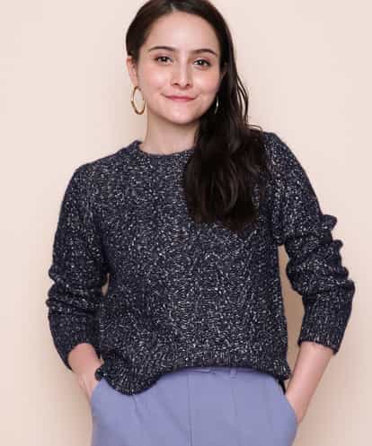 1点投入でコーデを華やかに見せるメランジ調ニット イタリー糸のメランジ調の糸にゴールドの糸が入ったカジュアルで華やかな印象の1枚着ニット。コーデの主役に着こなしたい1枚です。矢羽のアラン柄を前身頃に入れ、脇から後ろ身頃は鹿の子編みにすることですっきりとした印象に。肉厚な素材はコンパクトな丈とサイズ感で仕上げることでバランスが取りやすいシルエットに。※屋外での撮影は色味が多少異なる場合がございます。商品の色味は、スタジオ撮影の画像をご参照ください。 ※サンプルでの撮影となるため、実際にお届けする商品と仕様やサイズが異なる場合がございます。