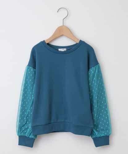 [140-150]チュールスリーブ裏毛トレーナー グリーン 150