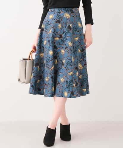 【洗える】ジオメトリックフラワースカート ブルー 40