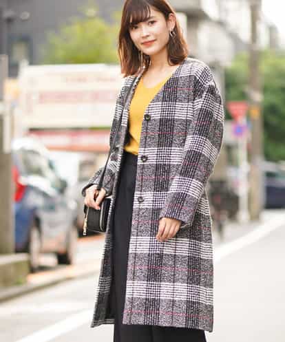 ループチェックノーカラーコート ブラック 40