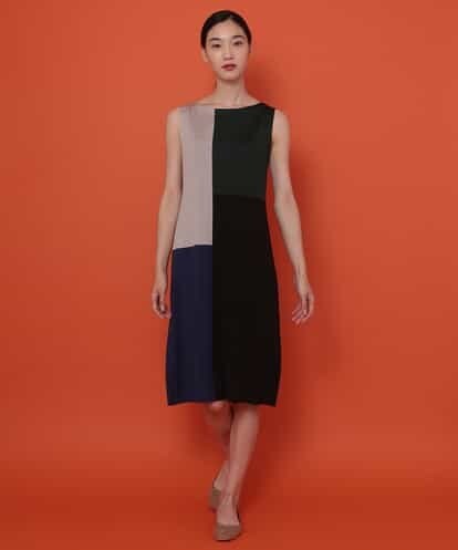 カラーブロッキングニットドレス ネイビー 40