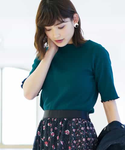 ◆秋の新作アイテム◆定番のテレコインナー。袖口と裾のメローフリルがポイント。衿ぐりはボートネックで女性らしさを演出。ワイドパンツはもちろん、今季トレンドのサロペットやジャンスカのインナーとしても最適。※34(XSサイズ)・42(XLサイズ)はWEB・一部限定店舗での販売です。