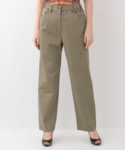 レーヨンとコットンをミックスした、エレガントな光沢のテキスタイルで仕立てたパンツです。すっきりと美しいシルエットを魅せてくれるストレートシルエットに、ウエストサイドをゴム仕様にした穿き心地の良さもポイントです。どんなスタイリングにも合わせやすいボトムスは色違いで揃えるのもオススメです。model:H165 B79 W60 H88 着用サイズ:M