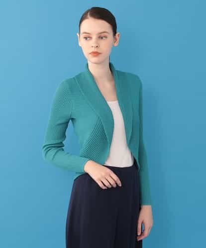 衿から裾まで続きになった個性的な編み地が表情豊かなニット仕立てのジャケット。しっかりと伸縮性のあるニット地がカーディガン感覚でコーディネイトにプラスして頂ける一着です。上品なフィット感がエレガントな羽織りアイテムに仕上がっています。model:H170 B80 W58 H81 着用サイズ:M