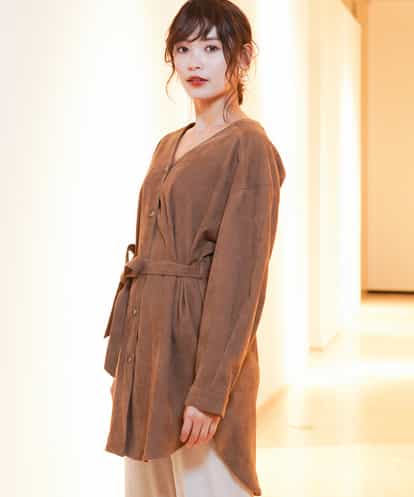 コーデュロイサッシュロングシャツ キャメル 40