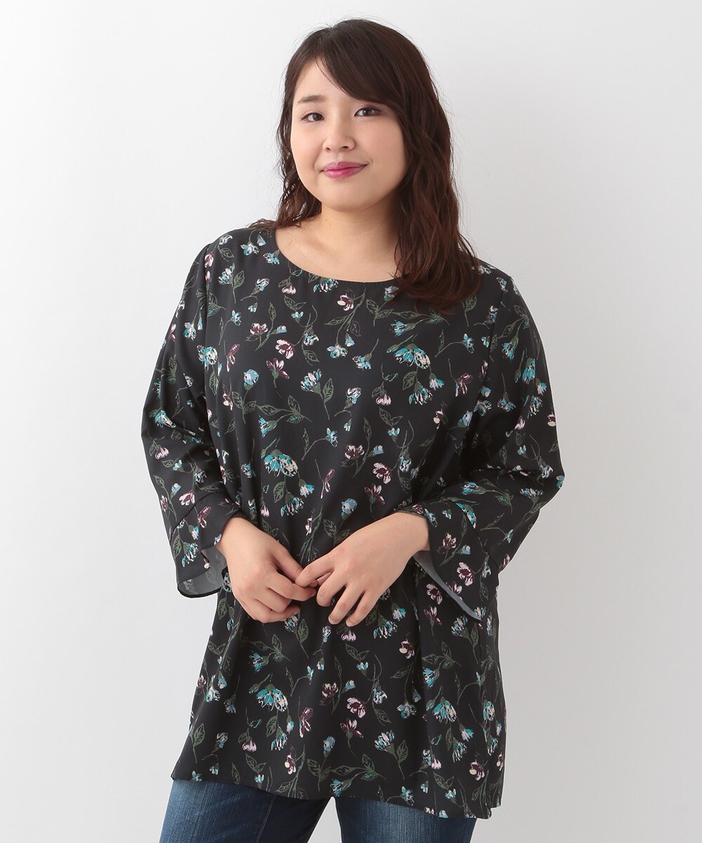 【大きいサイズ】ボタニカルプリントチュニック ブラック 1