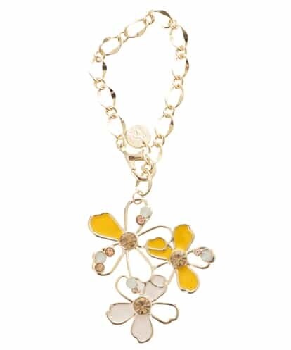 ラインストーン付きフラワー透かしチャーム イエロー フリーサイズ