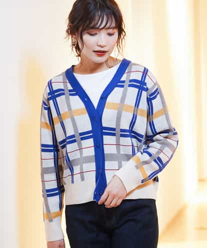 チェックジャガードカーディガン アイボリー 40