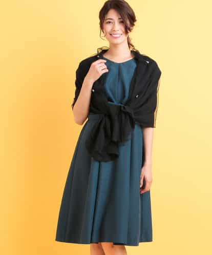 ◆秋の新作アイテム◆フロントのクロスがポイントになったシャンタン素材のドレス。フィットアンドフレアのシルエットですがウエストはゴムなので締め付け感が無く長時間のパーティーも楽ちんです。※34(XSサイズ)・42(XLサイズ)はWEB・一部限定店舗での販売です。
