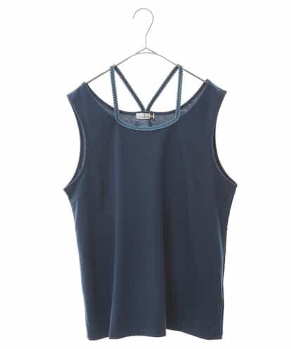 【大きいサイズ】パイピングタンクトップ ブルー 1