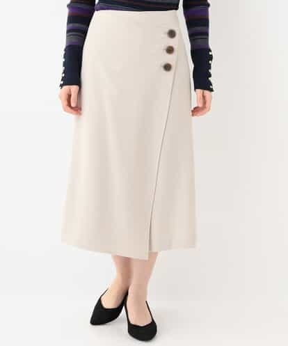レーヨン混の滑らかなストレッチツイルで仕立てたパンツです。フロントは大きなボタンが目を惹くラップデザインがポイントになっています。ミディ丈のワイドガウチョに、フロントはスカート見せ出来る一着です。※裏地付き、サイドファスナーmodel:H158 B77 W59 H85 着用サイズ:M