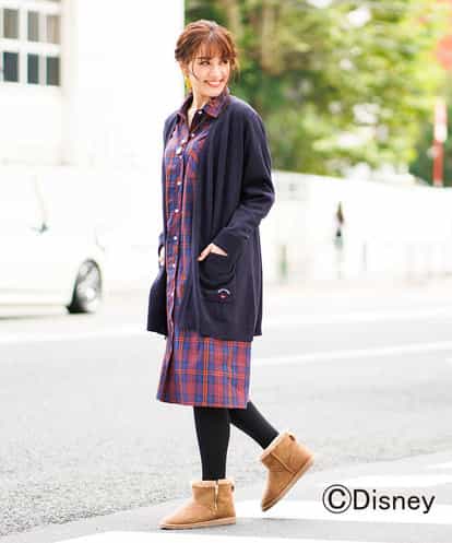 これからの季節に欠かせないニットカーディガンです。どんなスタイリングにも合わせやすいシンプルなデザインに、程良くロングに仕上げた丈感が上品なバランスの一着です。パッチポケットにはミッキーマウスの刺繍がキュートなワンポイントになっています。
