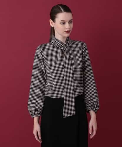 オーバーチェック柄のブラウス。配色が美しいオーバーチェック柄は、どこかレトロな印象と洗練されたシルエットで今年らしい1着に。絞った袖口やボウタイデザインがヴィンテージライクな雰囲気を演出し、裾をインしたスタイリングにもぴったりで、ジャケットやアウターインにもおすすめです。