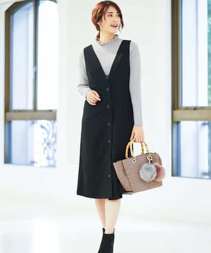 ◆大人が着たいキレイめジャンスカ◆ジャンスカタイプのワンピースです。リブインナーとの合わせがオススメ。女性らしいラインとボタンアクセントがポイント。前後Vあきも今季のトレンドディテール。着やすいストレッチ素材を使用。