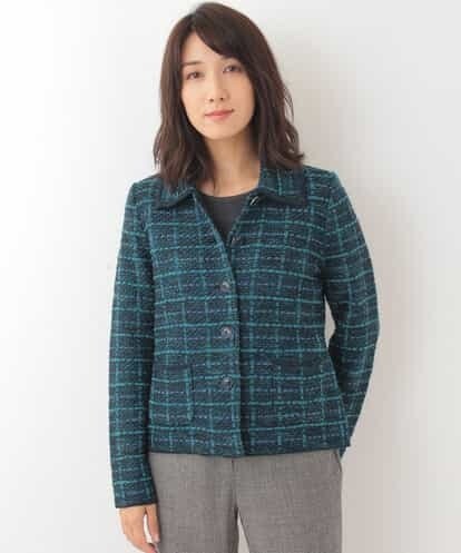 [クリスチャンオジャールレギュラーサイズ]3素材の糸を編み込んでツイード調に仕上げたニットジャケット 3素材の糸の表情差により素材の凹凸感が本物の ファンシーツイードのような上品な仕上がりで、 もニットならではの着心地の良さがあります 。 配色の無地パイピングできれいな仕上がりは 日本製ならではの繊細な仕上がり 。 秋の雰囲気を感じる上品なお出掛けジャケットです。model:H167 B80 W59 H84 着用サイズ:M