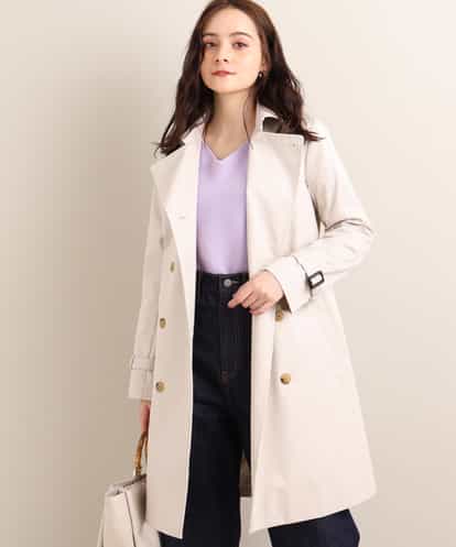 はっ水加工が嬉しい定番トレンチコート ベーシックでシンプルな形がトレンド関係なく長くご愛用いただけるトレンチコート。厚すぎない裏地のついたコートは羽織りやすく春・秋に活躍してくれます。着心地の良い柔らかな素材は窮屈感も少なく快適に着用していただけるよう仕上げました。無駄な切替え線をなくし、立体的というよりフラットめにつくることで体のラインをより美しく見せるよう仕上げたシルエットはすっきりと女性らしい印象に。きれいめで上品な光沢のある素材はきちんと感があり、毎日の通勤にもおすすめです。裏地のストライプ柄が脱いだときにもアクセントに。はっ水(水をはじきやすい)加工素材を使用。※屋外での撮影は色味が多少異なる場合がございます。商品の色味は、スタジオ撮影の画像をご参照ください。 ※サンプルでの撮影となるため、実際にお届けする商品と仕様やサイズが異なる場合がございます。
