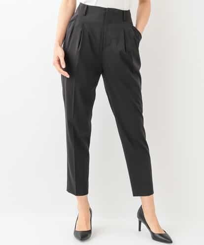 【洗える】ウエストタックテーパードパンツ ブラック 36
