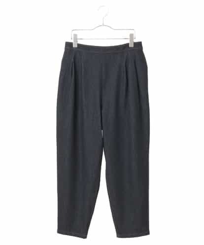 レーヨンやコットンをミックスした、デニム見えするパンツ。股上はゆったり、裾に向かって細くなるシルエット。裏起毛になった暖かなテキスタイルは、これからの季節にも最適なボトムスです。ゴム仕様になったバックウエストが穿き心地の良さもプラスしてくれます。※裏地付き、サイドファスナー