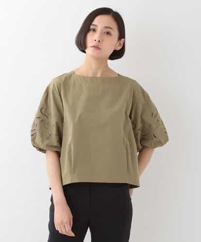 【手洗い可能】カットワークタフタボリュームスリーブブラウス カーキ 11