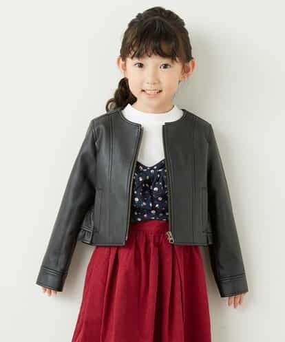 ◆フリルデザインがポイントのフェイクレザーブルゾンです♪◆後ろ裾のフリルデザインがポイントのフェイクレザーブルゾンです。ノーカラーデザインが上品なスタイリングにおススメの一枚です。※100サイズはWEB・一部店舗限定販売です。同じデザインの140〜160サイズございます。140・150サイズ商品コード:KJJJE02054160サイズ商品コード:KJJJF02059