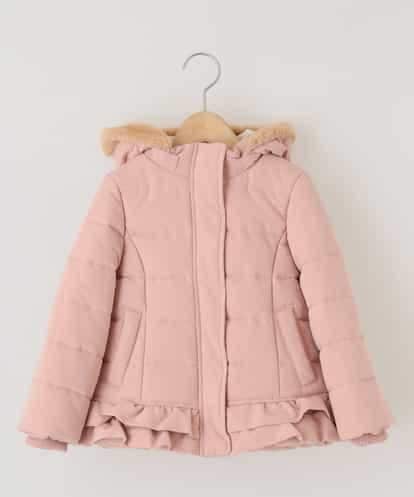 [140-150]【洗える】フリル中綿フードコート ライトピンク 140