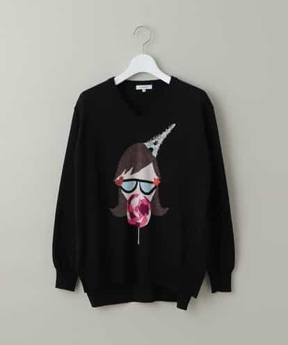 ビーズやキラキラとした糸をミックスした表情豊かなグラフィックが存在感抜群のニットトップス。色々なテクスチャが着回しの利くニットアイテムにしっかりと個性をプラスした一着に仕上がっています。テールロングになった裾やサイドスリットもフェミニンな印象に仕上がっています。