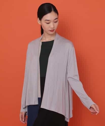 上品な光沢を放つシルクヤーンで編み立てたニットカーディガンです。サイドにドレープを持たせた広がりのあるシルエットが、素材のフェミニンな風合いをさらに引き立ててくれる一着です。すっきりと仕上げたフロントはスタイリングを邪魔せずに合わせられるデザインになっています。同じテキスタイルで仕立てた 【GBSID02390】 もお薦めです。model:H173 B80 W58 H84 着用サイズ:M