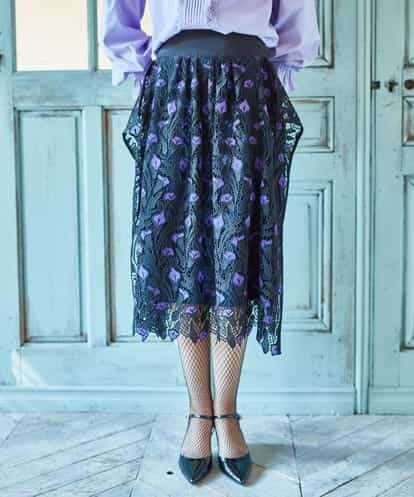お花をモチーフにしたレースをまとったスカートです。ヘムのスカラップやレーシーなデザインがひざ下をキレイにより女性らしく表現します。サイドの羽の様なレースがポイント。ウエストのボリュームのあるグログランリボンがメリハリのあるシルエットに仕上げます。華やかかつエレガントな雰囲気で、お出かけやパーティーシーンにもぴったりなデザインです。※バックファスナー、裏地付き。