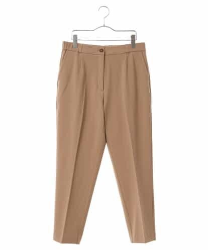 ウール見えするポリエステル、レーヨンのストレッチ素材。履き心地と暖かさがポイント。センタープレスを施した、上品なモード感が魅力の一着です。裾にかけてテーパードのかかったシルエットは、チュニックなどとも相性のいいバランス。ベルトレスのウエストはパンツインスタイルがきれいに決まります。ゴム仕様になったバックウエストは穿き心地の良さもプラスしてくれます。※ホワイトのみ裏地付き