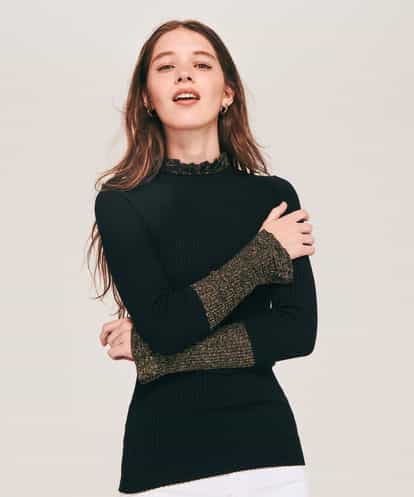 袖口と衿端にかけてラメをミックスして変化を付けたニットプルオーバー。柔らかく上品にフィットするリブニットに、エレガントなアクセントをプラスしたラメ使いがコーディネイトをランクアップさせてくれる一着です。主張し過ぎないバランスが、大人のニットアイテムに仕上がっています。model:H170 B81 W59 H88 着用サイズ:M