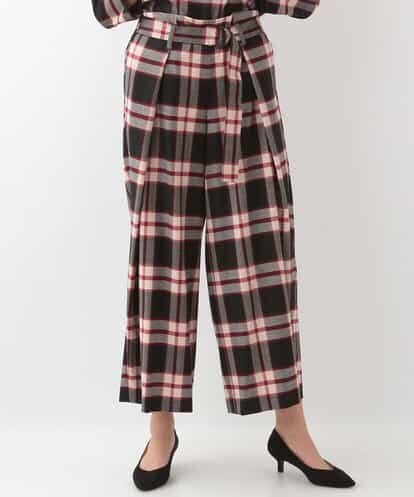 秋らしい大胆なブロックチェック柄のパンツ。 程よい肉感と細やかな起毛加工で温かみのある ウール混の上品なテキスタイルで仕立てました。 内側にとったフロントタックがボリュームを つくり、今年らしいモードなシルエットに。 共布ベルトをマークしたハイウエスト仕様に マニッシュな印象を与えてくれます。 バックウエストがゴム仕様になったリラクシーな 穿き心地もうれしいポイント。 同素材の▼ブロックチェックボックスプルオーバー 【PZBJD06230】とのセットアップもおすすめです。 model:H170 B83 W59 H84 着用サイズ:M(38)