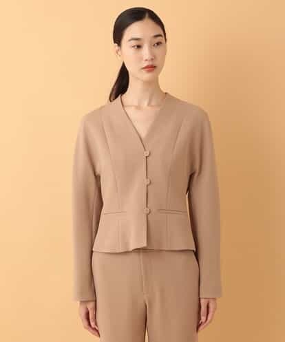 ノーカラーショートジャケット モカ 44