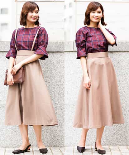 ◆秋の新作アイテム◆サスペンダー付きのボトムは今季のトレンドで重要なポイント。女性らしいフェミニンで綺麗目なフレアースカートをサスペンダー付きでアップデートしました。サスペンダー取り外し可能です。※肩紐が落ちてしまう場合は後ろをクロスさせると解決します。※34(XSサイズ)・42(XLサイズ)はWEB・一部限定店舗での販売です。